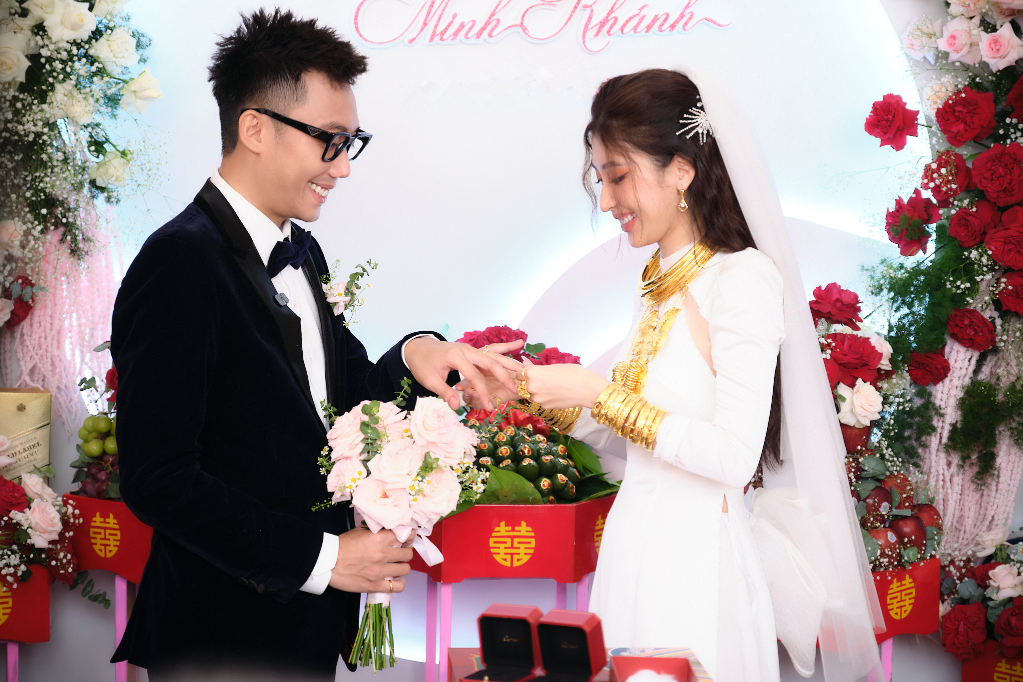 Cô dâu Nguyễn Kim Chi được gia đình hai bên trao hơn 20 cây vàng trong lễ ăn hỏi vừa diễn ra tại Bến Tre. Tham dự có dàn diễn viên Anh Dũng, Phạm Huỳnh Hữu Tài, Quang Sơn, vlogger Phở Đặc Biệt...