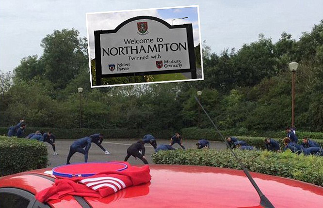 Thay vì tìm kiếm một sân tập chất lượng ở thị trấn Northampton, nơi chuẩn bị diễn ra trận đấu thuộc vòng 2 cúp Liên đoàn Anh, Mourinho đã yêu cầu học trò ra ngay khoảng sân trống của bãi đỗ xe để làm nóng với các động tác khởi động trong vòng 10 phút.