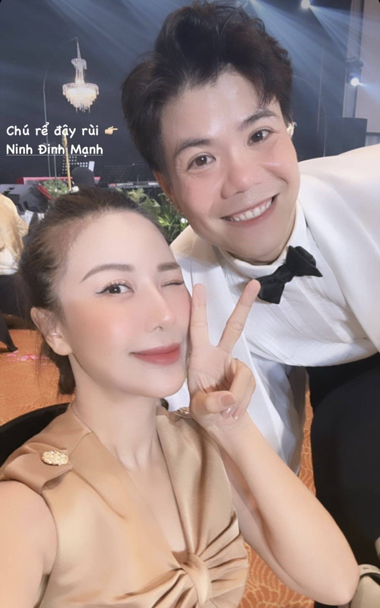 Ca sĩ Dương Hoàng Yến bận chạy show vẫn có mặt chúc phúc Đinh Mạnh Ninh. Trên trang cá nhân, cô viết: "Cuối cùng anh tôi đã lấy vợ rồi".