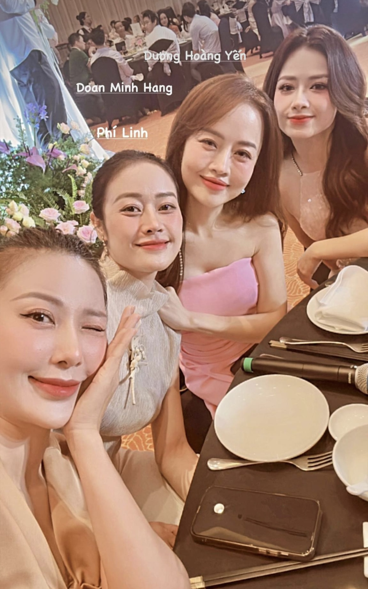 Quỳnh Hoa, Phí Linh, Đoàn Minh Hằng, Dương Hoàng Yến, Vũ Hạnh Nguyên... cùng nhiều bạn bè, đồng nghiệp thân thiết hội ngộ chúc mừng cặp đôi.