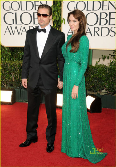 Angelina Jolie và Brad Pitt như thường lệ vẫn là cặp sao gây chú ý bậc nhất trên thảm đỏ. Năm nay Angie nhận được một đề cử cho Nữ diễn viên chính xuất sắc nhất (nhạc kịch/hài) với vai Elise trong The Tourist. Brad Pitt tuy không giành được đề cử nào nhưng vẫn đi cùng người tình tới sự kiện điện ảnh quan trọng bậc nhất trong năm với bộ vest tuxedo hiệu Tom Ford lịch lãm như thường lệ.