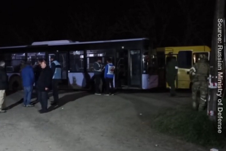 “Vào đêm 30/4 sau khi lệnh ngừng bắn có hiệu lực và một hành lang nhân đạo được mở ra, hai nhóm dân thường đã rời khỏi các tòa nhà dân sự nằm tiếp giáp khu vực nhà máy thép Azovstal ở Mariupol, Ukraine. Nhóm đầu tiên có 25 người, nhóm thứ hai có 21 người”, hãng tin RT dẫn thông cáo từ Bộ Quốc phòng Nga cho biết.