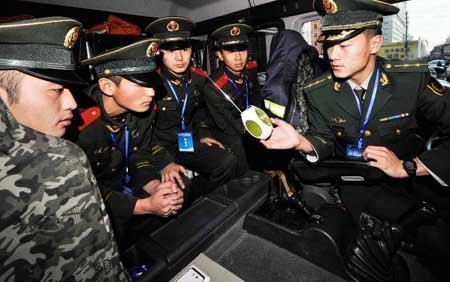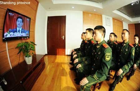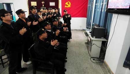 Lính cứu hỏa tại thành phố Trường Xuân, tỉnh Cát Lâm ở đông bắc Trung Quốc theo dõi Đại hội Đảng qua radio.
