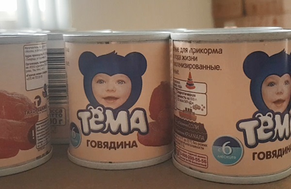 | Hàng cứu trợ là các loại đồ hộp đã được trao tận tay người dân |