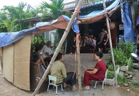 | Gia đình ông Vũ đã phải giăng lều ở tạm để đảm bảo an toàn (Ảnh: infonet) |