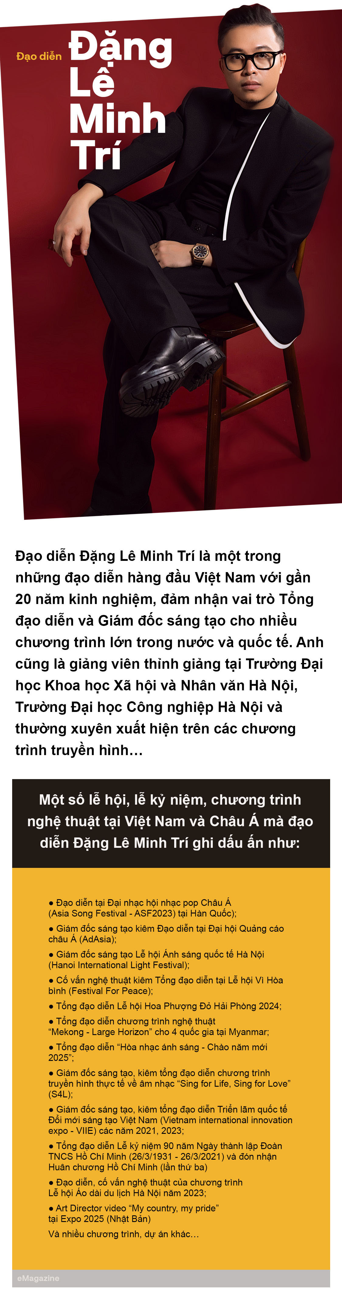 Hành trình gần 20 năm của Đặng Lê Minh Trí là một chuỗi những dấu ấn đáng nhớ, từ những sân khấu trong nước đến những sự kiện tầm cỡ quốc tế.