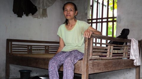 | Thân thể chị Phương gầy gò vì bệnh tật hành hạ |