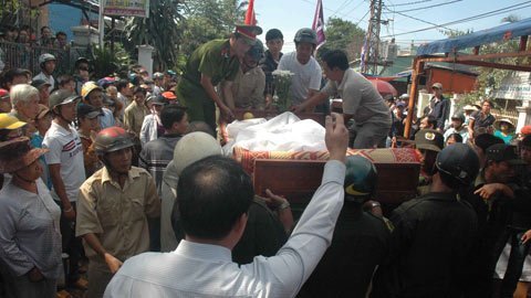 | Hàng trăm người dân xót thương tiễn đưa các nạn nhân. |