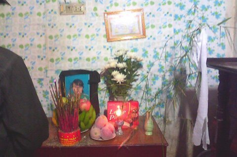 | Mỗi khi nhìn lên di ảnh gia đình em Ch. không ai cầm được nước mắt |