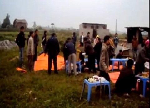 | Những người đến trung tâm tìm mộ ở Hòa Mạc (Duy Tiên, Hà Nam) muộn phải trải chiếu, dựng lều ở cánh đồng để áp vong. |