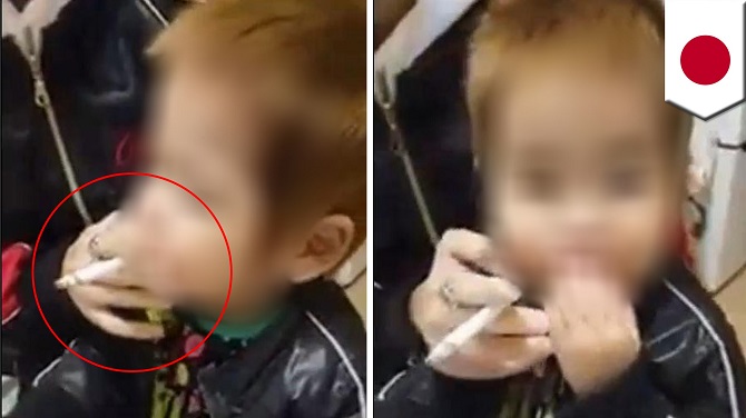 Trong đoạn video quay bằng smartphone tại một căn hộ ở Nagoya, cậu con trai của Habuchi tỏ biểu cảm rất sợ hãi và khó chịu với mùi khói thuốc lá do ông bố "đầu độc".