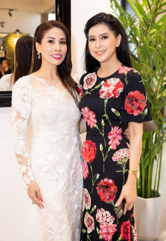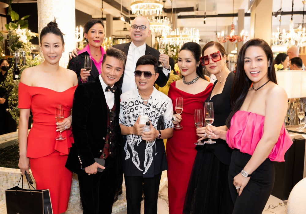 Ý Lan cùng ông xã là khách mời tại một sự kiện ở TP.HCM. Trong khi nữ danh ca diện bộ váy đỏ rực phong cách cổ điển, chồng chị lịch lãm với vest kẻ. Ở tuổi 65, danh ca được khen trẻ đẹp, giữ nét mặn mà theo thời gian. Chị cho biết mình và chồng nhiều năm qua đều đặn tập thể thao, ăn uống kiêng khem và có thói quen sống lành mạnh. Ý Lan và người chồng thứ 3 - kỹ sư Lê Anh Tuấn kết hôn năm 2003. Gần 20 năm bên nhau, cô và chồng vẫn mặn nồng, dành cho sự ân ái, quan tâm đối phương. Nữ danh ca từng chia sẻ chị tự hào vì ông xã hiền lành, tử tế, giúp mình tìm được điểm tựa quãng đời còn lại.Danh ca Quang Linh giản dị với áo họa tiết đen trắng. Đây cũng là dịp hiếm hoi nam ca sĩ dự sự kiện theo lời mời của một người bạn thân. Thu Phương quyến rũ với váy gam đen cúp ngực. Nữ ca sĩ gần đây về nước thường xuyên để tham gia các dự án âm nhạc. Nhật Kim Anh khoe vai trần, nước da trắng mịn với lối phối đồ tông hồng - đen tương phản. Pha Lê và con gái ton-sur-ton với váy trắng khi đi trên thảm đỏ. Trang Trần tự tin với sắc vóc "gái một con" quyến rũ nhưng không kém phần cá tính. 2 Hoa hậu Hoàn vũ Ngọc Châu và Khánh Vân tranh thủ tâm sự trước khi sự kiện bắt đầu. Diễn viên Lý Hương vui mừng hội ngộ cựu diễn viên Thủy Tiên sau nhiều năm không gặp.Á hậu Trương Thị May cùng Đàm Vĩnh Hưng vui vẻ chụp ảnh cùng NSƯT Thành Lộc. Cả hai không ngại bày tỏ tình cảm, sự ngưỡng mộ dành cho đàn anh. Các khách mời (từ trái qua): diễn viên Mai Thu Huyền, Lý Hương, Đàm Vĩnh Hưng, danh ca Cẩm Vân và "bà trùm làng mốt" Trang Lê. Các khách mời hào hứng chụp ảnh, tâm tình trong buổi tiệc. Họ vui mừng vì nhịp sống showbiz trở lại rộn ràng sau thời gian dài im ắng do dịch.