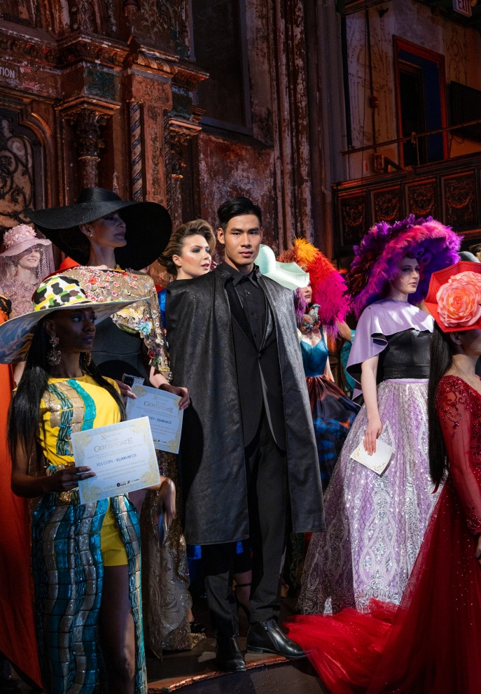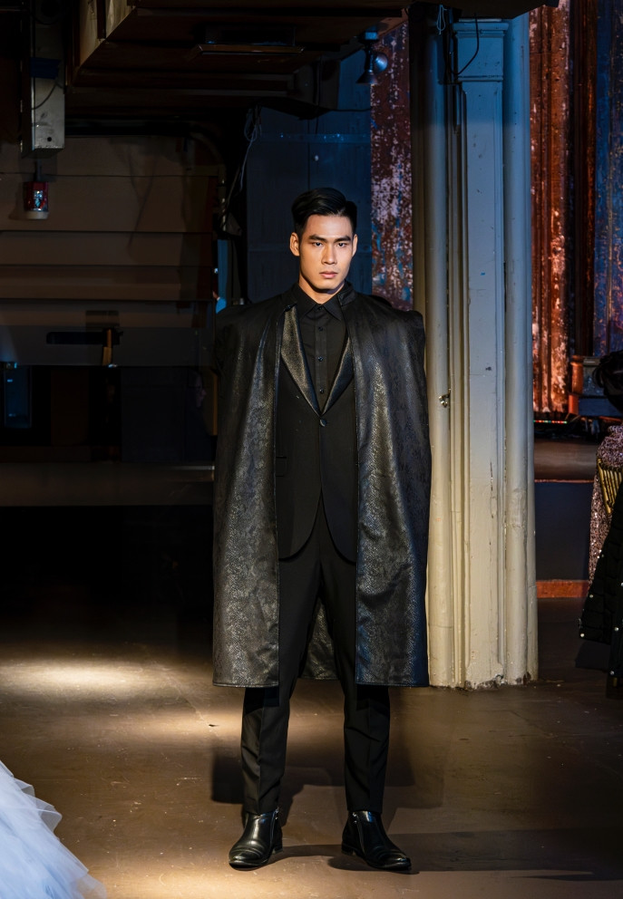 Nam vương toàn cầu 2021 Danh Chiếu Linh vừa kết thúc buổi trình diễn cho nhà thiết kế lừng danh Andres Aquino Tuần lễ thời trang New York.