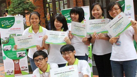 | Các bạn trẻ trong chương trình được trao chứng nhận tiết kiệm nước |