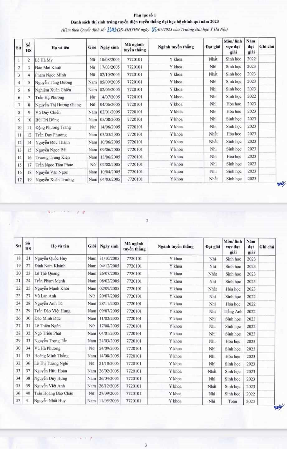 Danh sách thí sinh trúng tuyển vào Trường ĐH Y Hà Nội cụ thể như sau: