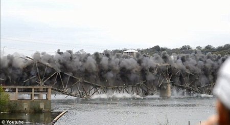 Chỉ mất chưa đầy 2 giây, cây cầu Marble Falls 77 tuổi ở Texas (Mỹ) đã bị phá hủy hoàn toàn.