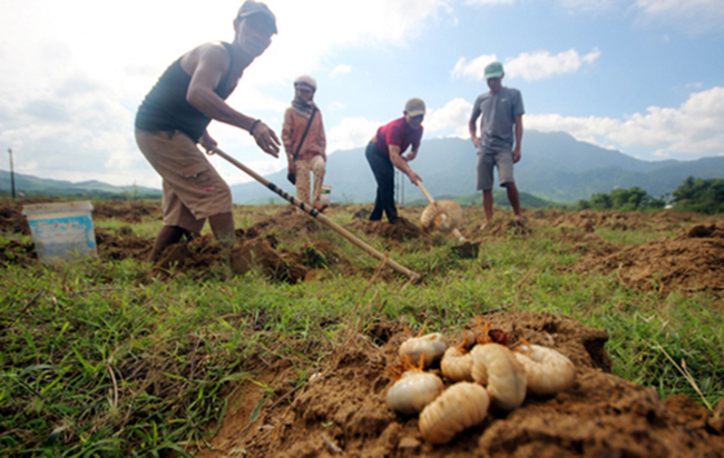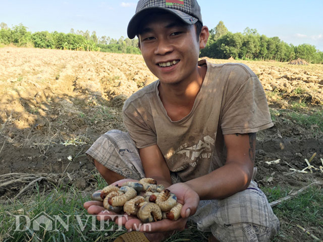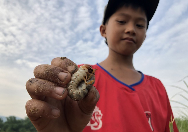 Từng nhát cuốc đưa xuống, đất bở tơi được xới lên, lộ ra một vài con vật màu trắng ngà, có 6 chân, to bằng ngón tay người lớn.