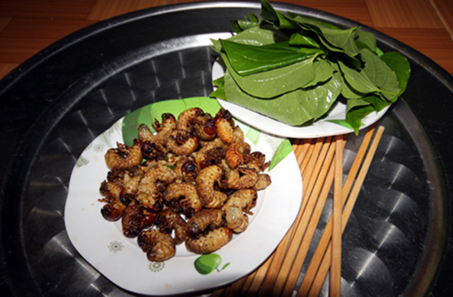Sùng đất được chế biến thành nhiều món ngon, được ưa chuộng nhất là chiên giòn hoặc nướng, ăn cùng lá lốt.
