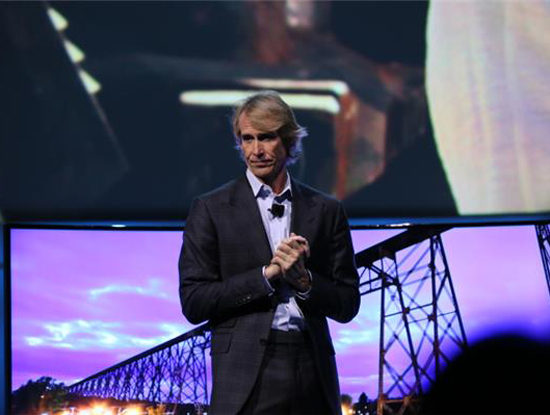 Đạo diễn Bay được hỗ trợ bằng đoạn phim “Transformers” chiếu trên màn hình phía sau, bước lên sân khấu và bắt đầu nói về cách ông tạo ra các tác phẩm như thế nào trước khi đột ngột dừng lại. Ông chìm vào im lặng và nói một số điều không liên quan. Có lẽ, ông đang tìm kiếm máy phóng đại chữ, thiết bị “nhắc bài” thường gặp cho người dẫn chương trình truyền hình. Sau đó, ông nói “Xin lỗi…” rồi rời khỏi bục, để lại Joe Stinziano – Phó Chủ tịch cấp cao của Samsung trên sân khấu.