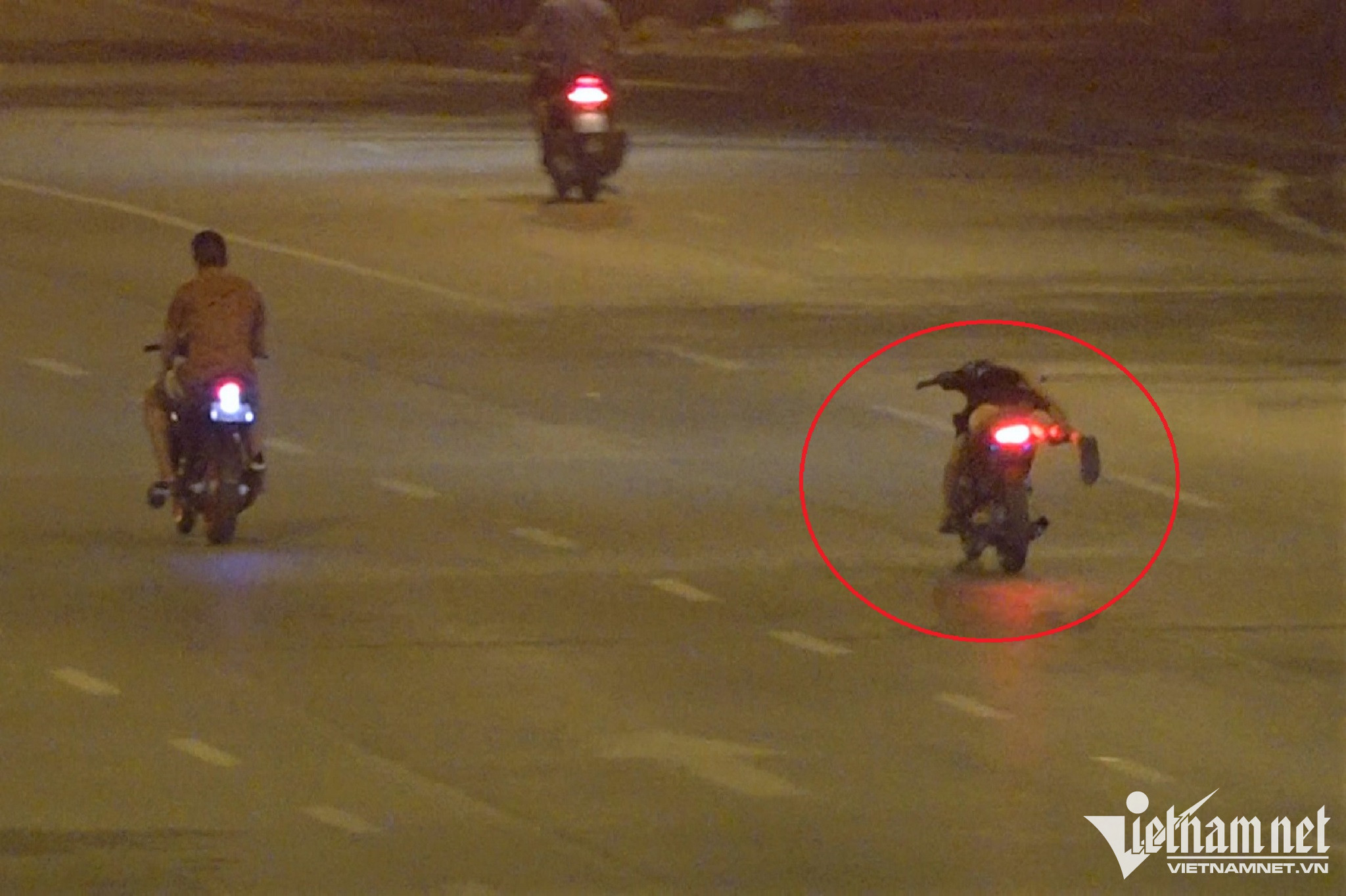 21h đêm trên đường Võ Chí Công (Hà Nội), những chiếc xe máy có tiếng nổ đinh tai nhức óc liên tục chạy với tốc độ cao, lạng lách đánh võng trên đường.