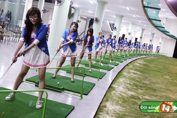 | Các thí sinh trổ tài chơi golf. |