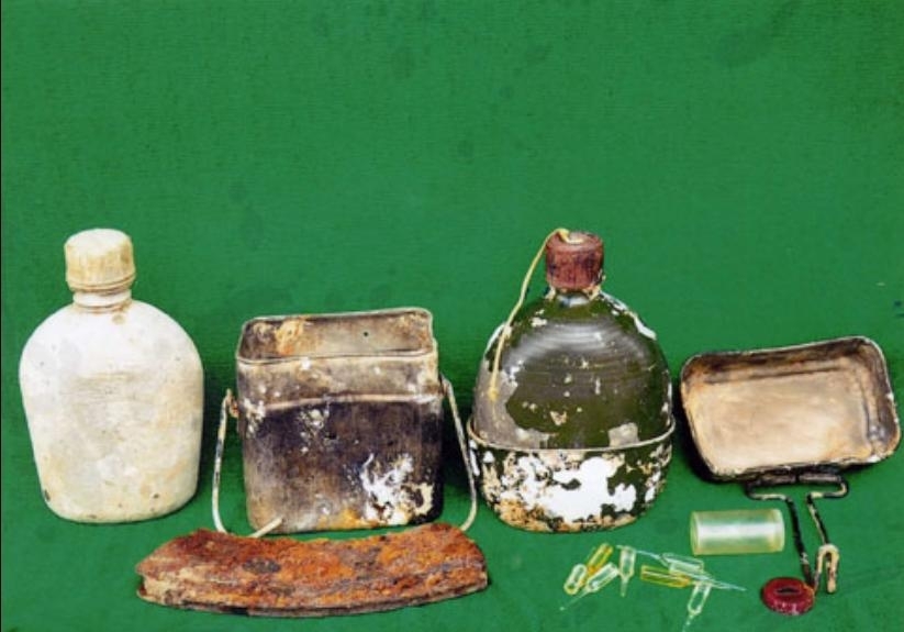 hiện vật khác như bi đông đựng nước, cà-mèn, băng đạn, súng AK.