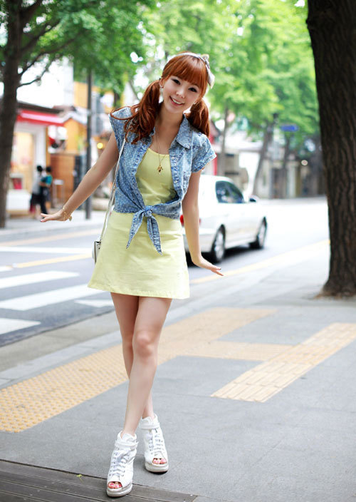 Buộc thắt nơ một chiếc sơ mi có thể tạo thành chiếc áo khoác lửng rất cá tính khi kết hợp với váy ngắn liền