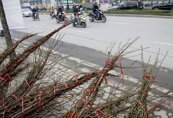 Những bó đào này được chở về từ các vùng Mộc Châu (Sơn La), Sa Pa (Lào