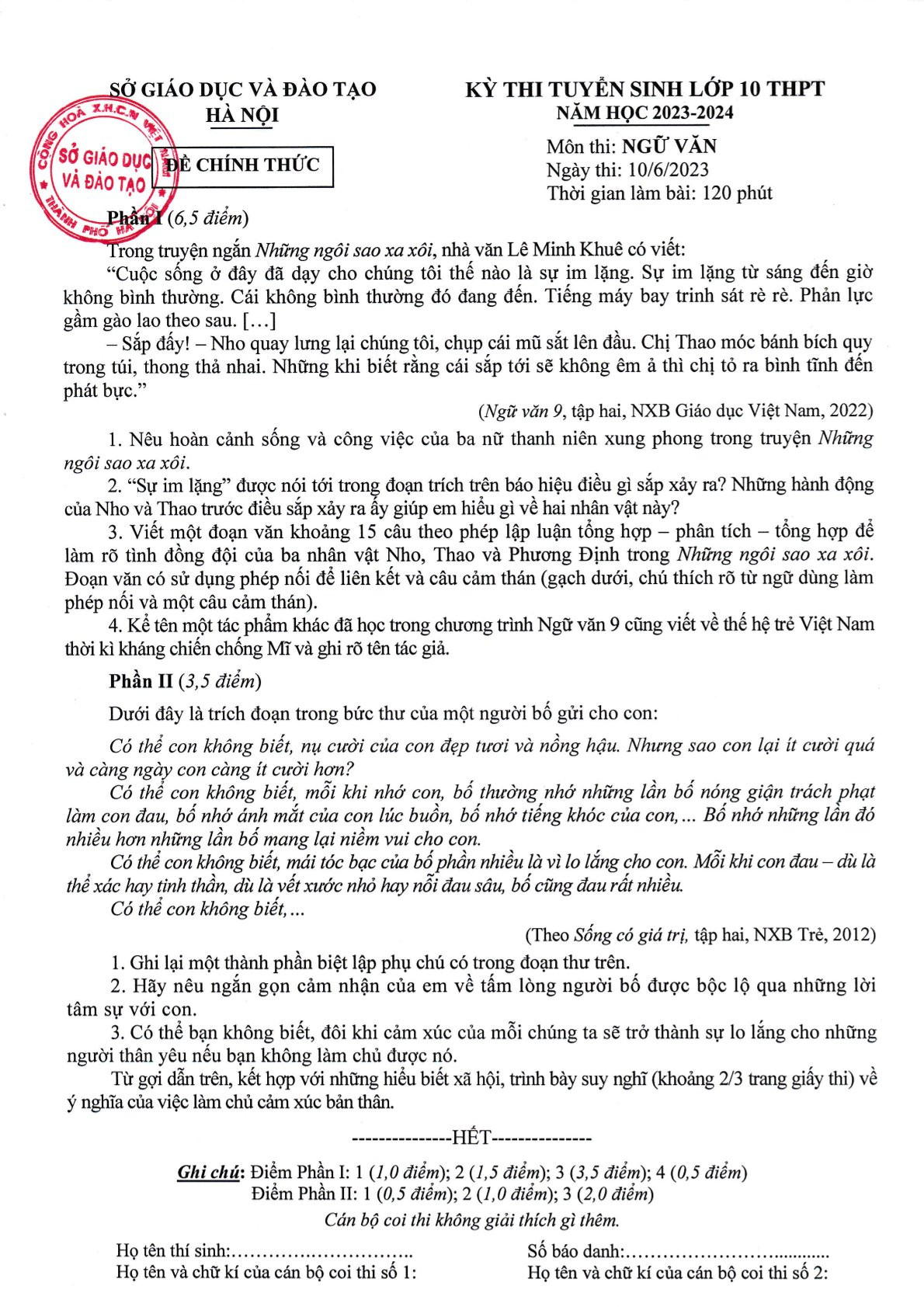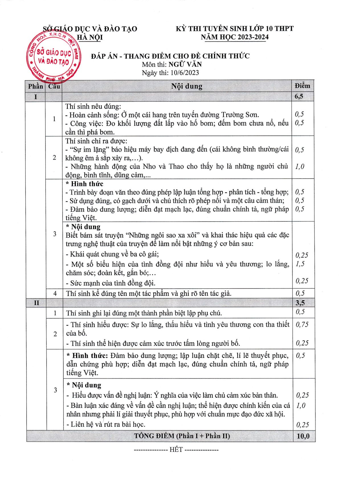 Đề thi và đáp án môn Văn cụ thể như sau: