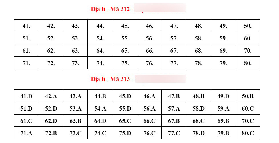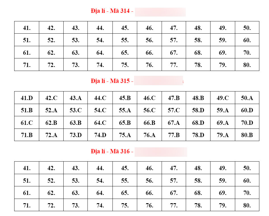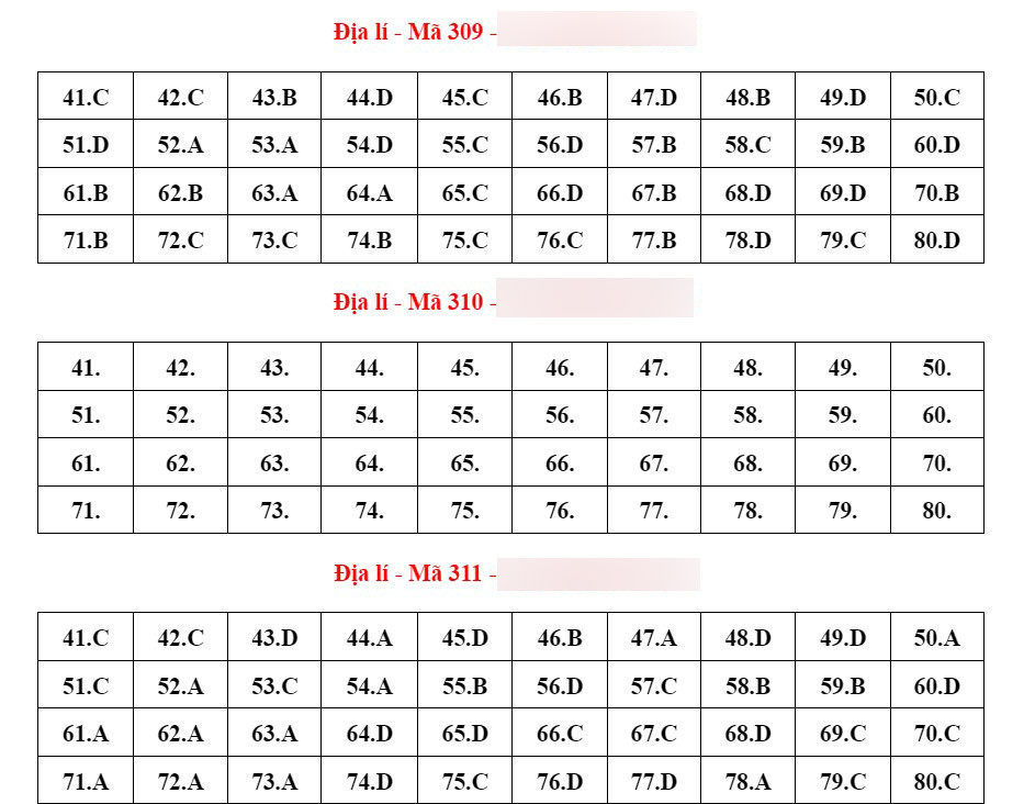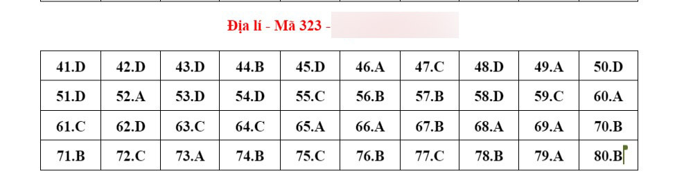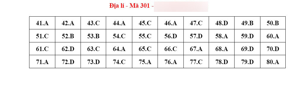 Đáp án tham khảo môn Địa lý do do Ban chuyên môn Tuyensinh247 thực hiện như sau: