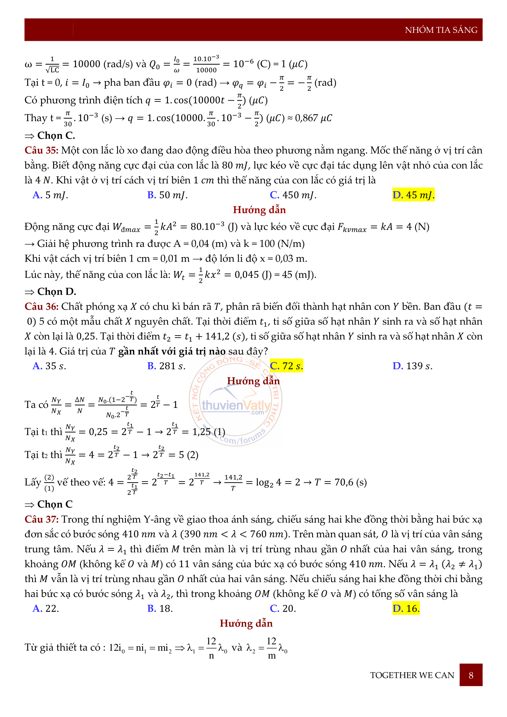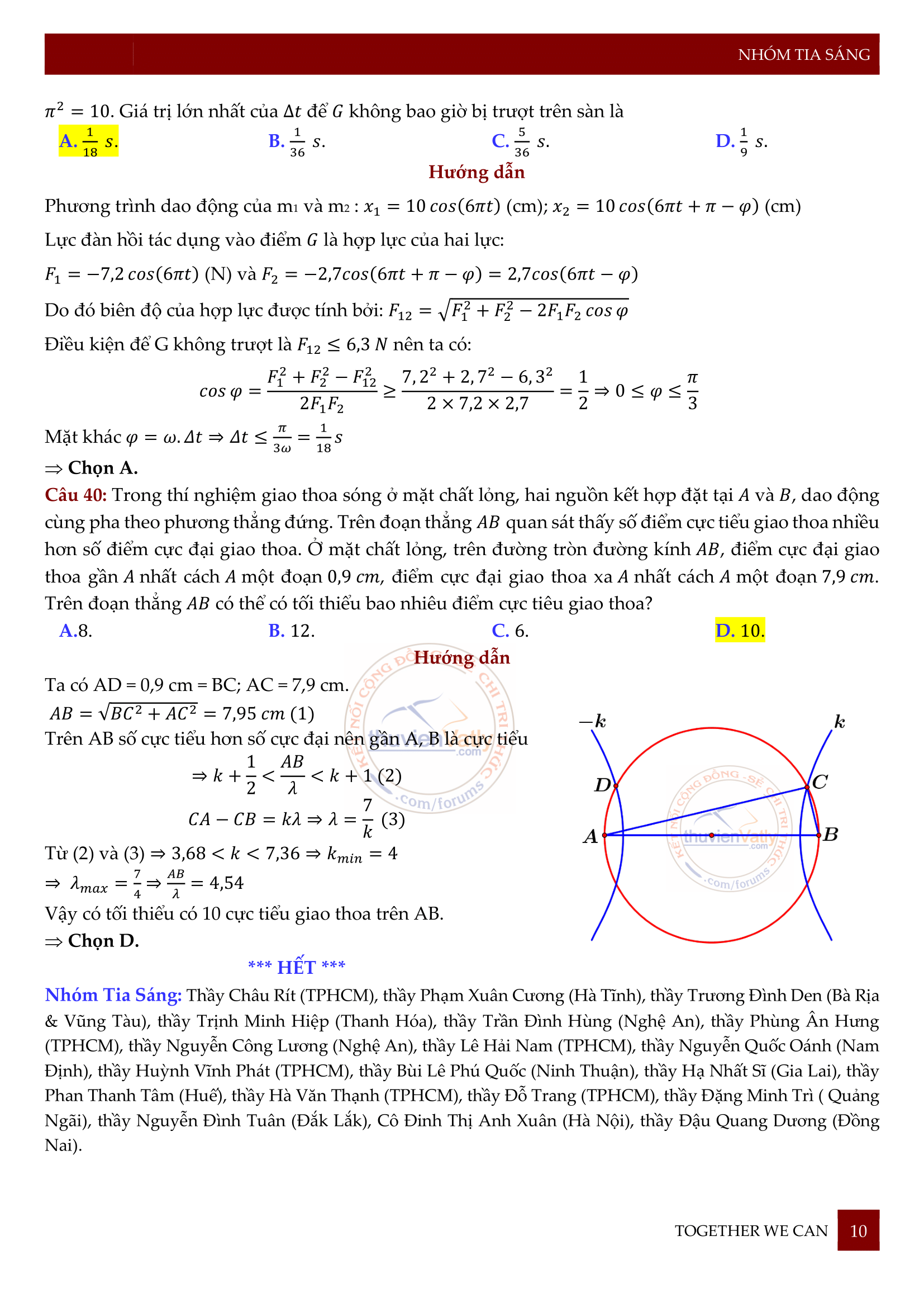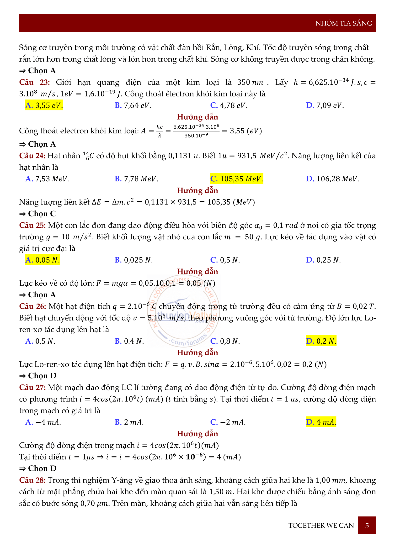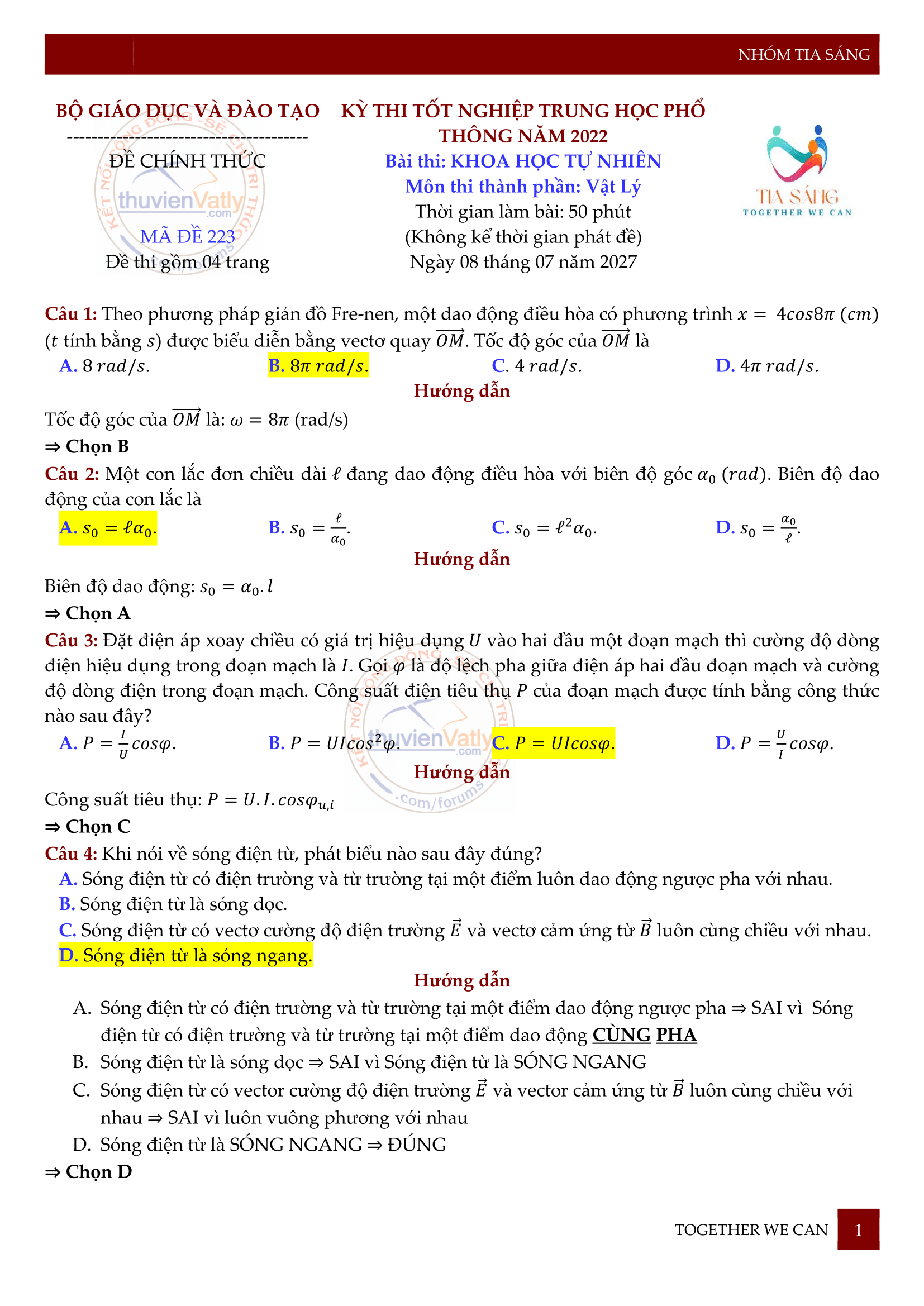 Đáp án đề thi môn Vật Lý thi tốt nghiệp THPT 2022 mã đề 223: