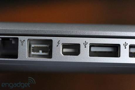 MacBook Pro thế hệ mới gần như không có sự thay đổi về hình dáng ngoại trừ kết nối Thunderbolt thay cho Mini DisplayPort trước đây.