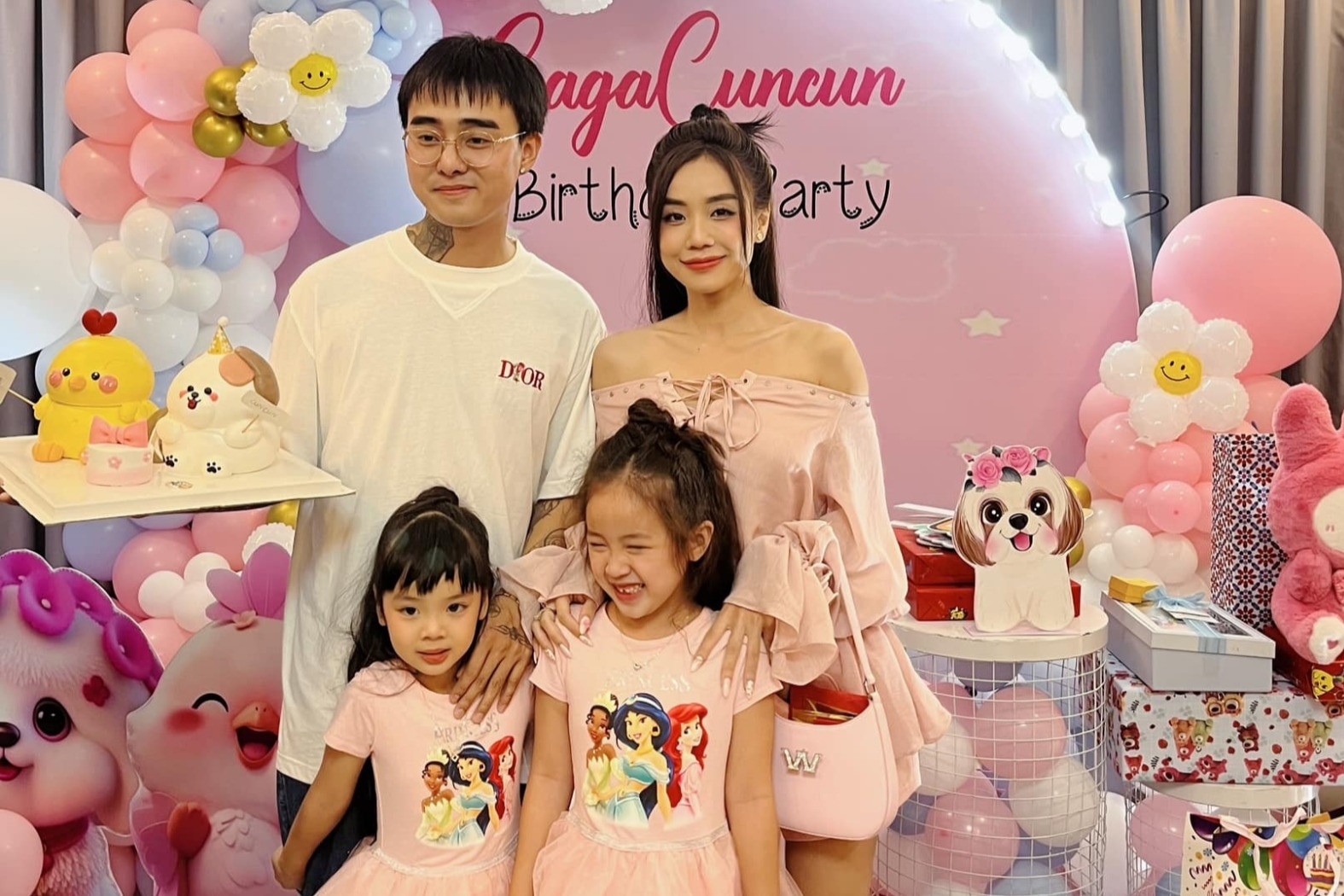 Trước đó, Cindy Lư cũng đăng ảnh gia đình hạnh phúc bên ca sĩ, nhạc sĩ Đạt G và hai con gái, kèm theo lời nhắn nhủ: "Cảm ơn vì đã âm thầm đồng hành cùng em nuôi dạy, chăm sóc lo lắng cho tụi nhỏ từ chuyện ăn uống, đến học hành suốt 3 năm nay và cảm ơn vì đã luôn theo đúng chủ nghĩa để trẻ thơ đầy đủ tình thương khi lớn lên".