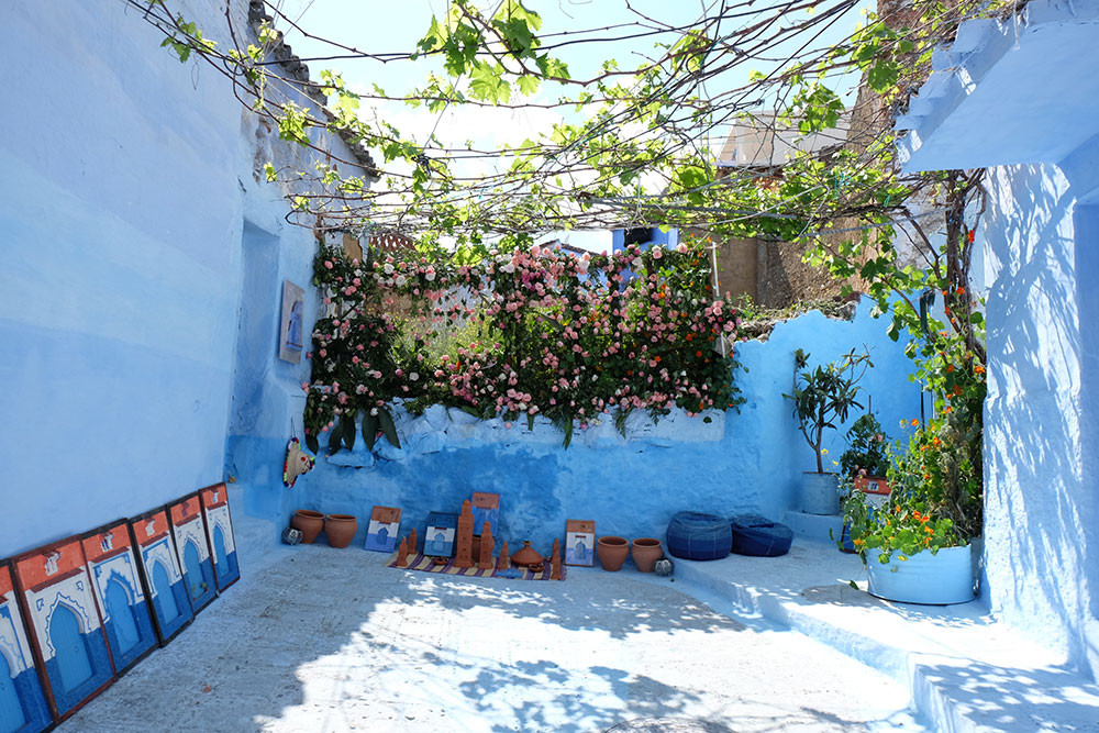 Trong lành, tươi mát, tinh khôi chính là những gì có thể hình dung về ngôi làng nhỏ này. Hãy chịu khó bước ra khỏi cửa từ sáng sớm, khi người dân trong làng còn chưa tỉnh giấc, để ôm trọn viên ngọc này vào lòng. Vào khoảng thời gian này, Chefchaouen mang một màu xanh nguyên bản, từ màu tường, màu cửa, những viên gạch lát trên phố cho đến thùng thư và biến áp điện. Muộn hơn một chút, cả ngôi làng tỉnh giấc, tấp nập, bận rộn và đem đến nhiều màu sắc hơn, ví như thêm những tấm thảm treo khắp con ngõ nhỏ.