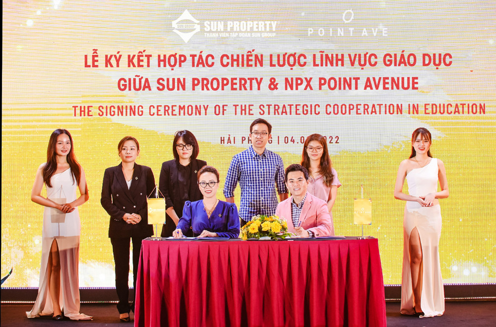 Sun Property cũng ký kết hợp tác chiến lược với Công ty TNHH NPX Point Avenue Pte trong lĩnh vực giáo dục để phát triển các hệ thống giáo dục tiêu chuẩn quốc tế, gia tăng giá trị cho các dự án, hiện thực hóa cam kết về những hệ sinh thái bài bản, đẳng cấp.