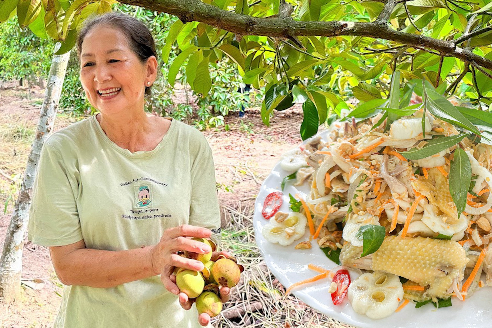 Nắm bắt nhu cầu thực khách, anh Đức nhanh chóng tìm hiểu cách làm gỏi gà măng cụt của người dân miền Tây, biến tấu hài hòa với khẩu vị người miền Bắc. Vốn là cửa hàng có "món tủ" là gà ủ muối, anh kết hợp ngay loại gà này với măng cụt để làm gỏi, bên cạnh đó là bắp cải tím, bắp cải trắng, dưa chuột, hành tây, cà rốt, rau răm.