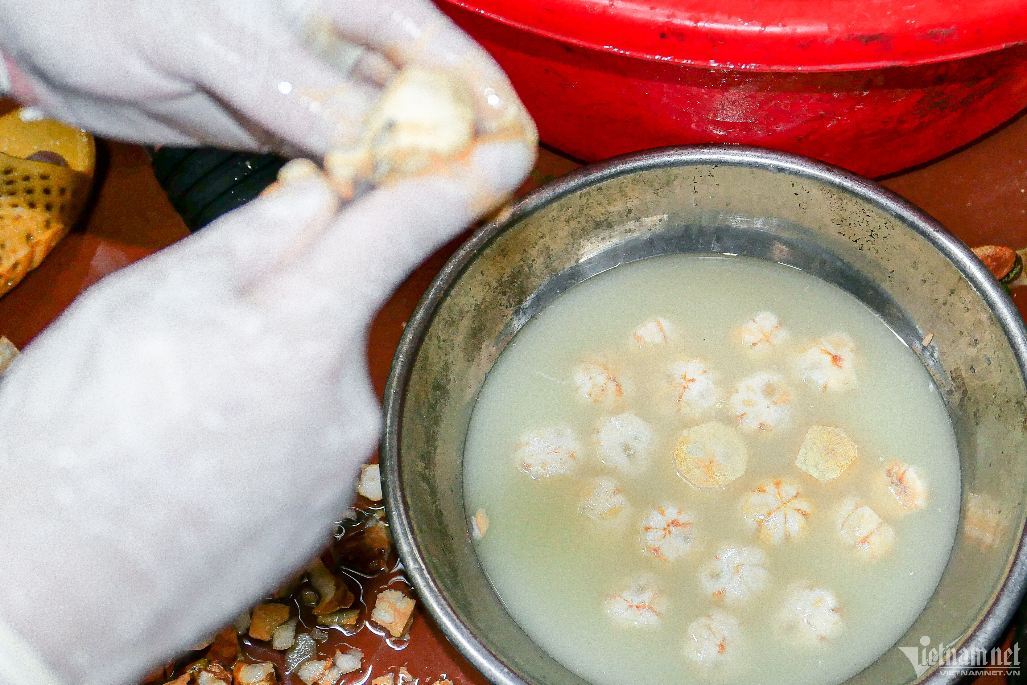 Theo anh Đức, công đoạn phức tạp, tốn công nhất trong món ăn này là tách vỏ măng cụt. Loại trái này nhiều mủ nên việc sơ chế vất vả. Sau khi tách sạch vỏ, người làm phải thả ngay vào tô nước chanh pha muối loãng để giữ độ trắng, giảm độ chát. Toàn bộ nhân viên trong chuỗi cửa hàng, lên tới gần 40 người được huy động để tách vỏ măng cụt.