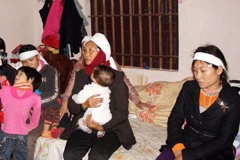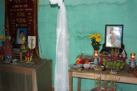 | Gia đình thuyền viên Nguyễn Đình Đồng đã chít trăng khăn tang |