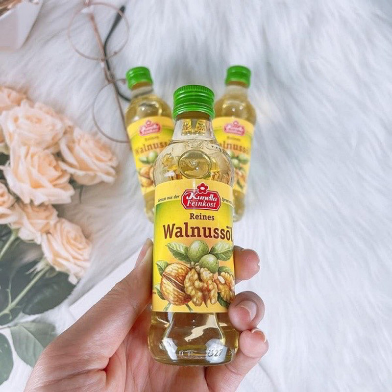 Dầu hạt óc chó chứa các chất béo không bão hòa như Omega-3, ngoài ra còn hỗ trợ cơ thể hấp thu các vitamin cần thiết cho cơ thể nên được nhiều mẹ lựa chọn bổ sung cho bé. Theo từng giai đoạn phát triển mà lượng dầu ăn bé cần mỗi ngày sẽ khác. Giai đoạn mới bắt đầu ăn dặm, mẹ có thể cho từ 2-5ml dầu óc chó (1-2 muỗng cà phê), giúp cho trẻ làm quen dần với hương vị. Giai đoạn từ 1-2 tuổi, mỗi bữa ăn trẻ cần 7-10ml (2-3 muỗng cà phê) để đáp ứng được tốc độ phát triển nhanh chóng ở trẻ.