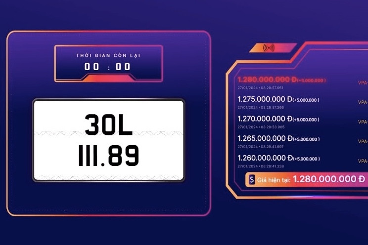Đáng chú ý, chiếm số lượng đông đảo là các giá chốt ở mức thấp nhất 40 triệu đồng, tương đương số tiền đặt cọc ban đầu. Biển số có giá trị cao nhất là 30L-136.66 của Hà Nội được chốt mua với số tiền 215 triệu đồng.