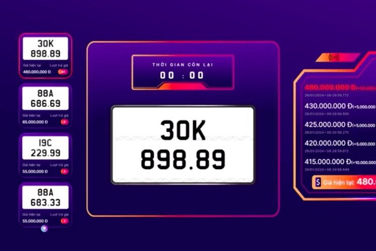 Chiều 29/1, Công ty Đấu giá hợp danh Việt Nam (VPA) đã đưa 5.000 biển số lên sàn đấu giá trực tuyến, trong đó có 134 biển được mua, chiếm tỷ lệ 2,68%.
