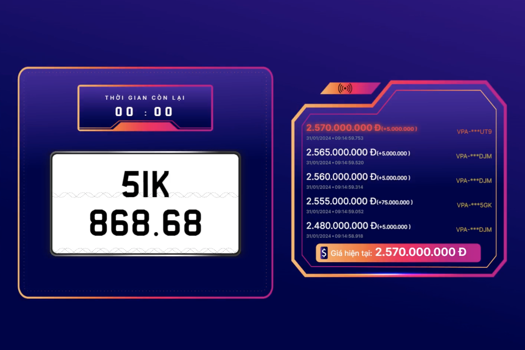 Thời điểm gay cấn nhất xảy ra vào 3 giây cuối, số tiền bước giá chênh lệch lên tới 110 triệu đồng và tài khoản "xxxNYO" đã nhanh tay mua được với thời gian chốt chênh sát nhau 0,1 giây. Kết quả cuối cùng biển 51K-979.79 có giá lên tới 1,545 tỷ đồng.
