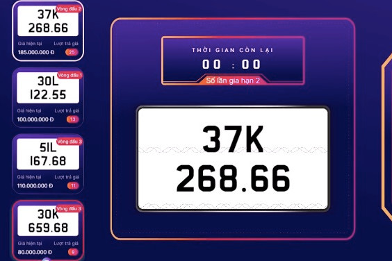 - Thời gian của một cuộc đấu giá bao gồm thời gian đấu giá chính thức (25 phút) và thời gian của vòng đấu gia hạn thay vì 30 phút cho 1 biển số như trước đây.