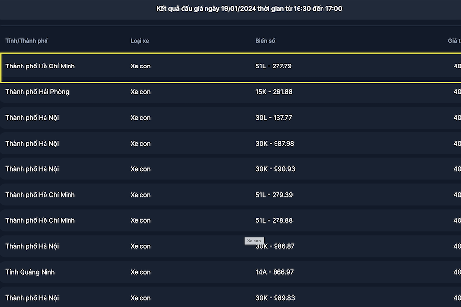 Ngoài biển số trên, sáng nay, các biển trúng đấu giá còn lại đều không có biển nào vượt mốc trên 1 tỷ đồng. Chỉ có 3 biển số của Hà Nội gồm 30L - 006.66; 30L - 016.66 giá và 30L - 007.77 có giá cao lần lượt 290 triệu đồng; 170 triệu đồng và 110 triệu đồng, tất cả các biển khác giá đều dưới 100 triệu đồng.