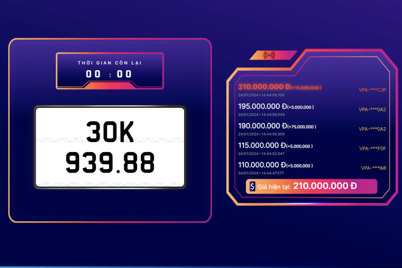 Sáng 25/1, Công ty Đấu giá hợp danh Việt Nam (VPA) tiếp tục đưa 5.000 biển số lên sàn đấu giá trực tuyến. Tuy nhiên, số lượng biển số đẹp không nhiều, nên tỷ lệ biển trúng đấu cũng khá thấp, chỉ có 39 biển số được mua, đạt tỷ lệ 0,78% trên tổng số 5.000 biển.
