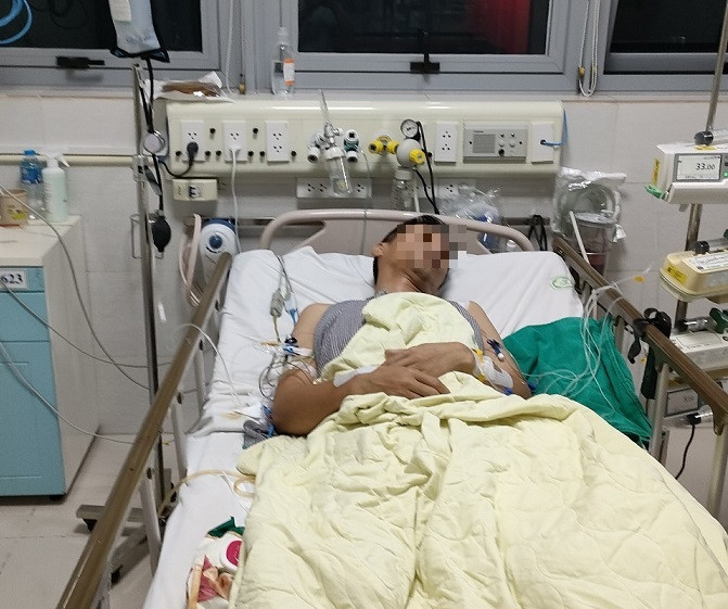 Tuy nhiên, chỉ sau 45 phút nhập viện, bệnh nhân diễn biến nặng, xuất hiện rối loạn nhịp tim, ngừng tuần hoàn và được cấp cứu ngừng tuần hoàn 10 phút thì có mạch trở lại. Các bác sĩ tiến hành đặt ống nội khí quản, duy trì thuốc vận mạch và chuyển lên Bệnh viện Bạch Mai.