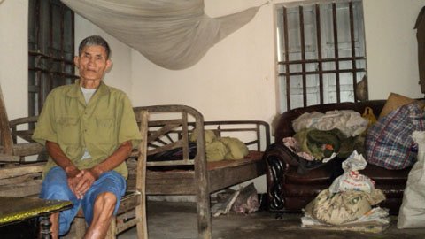 Căn nhà ngói do các con ông dựng lên lúc chưa lập gia đình nay trống trơn không còn thứ gì giá trị ngoài mấy bao thóc không đủ ăn và chiếc bàn thờ tổ tiên. Căn buồng nhỏ được dùng để nhốt đứa con trai tâm thần: “Bệnh của nó cứ ngày một nặng, không nhốt vào nó mà ra được thì chết. Ăn uống, vệ sinh, tắm rửa ở hết trong đó. Gần đây sức khỏe nó yếu nên ít đập phá hơn. Nó chẳng thèm mặc quần áo, mặc vào lại xé ra, cứ ở truồng như vậy đấy”_ông Mạnh buồn rưng rưng.