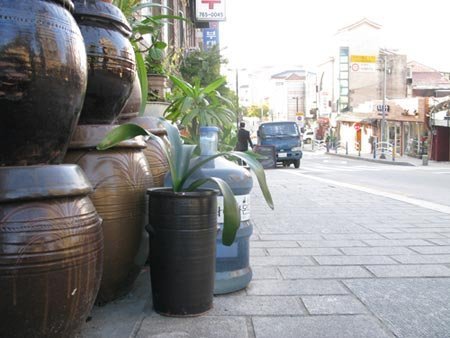 đám vại sành muối kim chi trầm mặc dưới hiên, những nền nhà dẫn luồng khói bếp