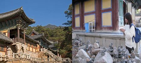 | Chùa Bulguksa - ngôi ngôi tự viện lớn và đẹp nhất Hàn Quốc. Khách thập phương đến đây thường tự tay xếp 1 chồng đá để cầu bình an. |