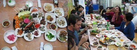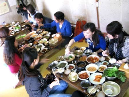 | Một bữa cơm bình dân trong nhà cổ hanok, bên các gò mộ Daereungwon ở cố đô Gyeongju. |